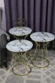 Zigonzi 3'lü Zigon Kum Saati Sehpa Takımı Beyaz Siyah Mermer Desenli Gold Ayak