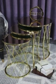 Zigonzi Gold Metal Bronz Aynalı, Hasır C Üçlü Zigon Sehpa