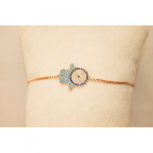 Ana Sayfa Takı & Gözlük & Saat Takı Kadın Takı Bileklik Zirkon Taşlı Fatma Ana Eli Figürlü Gold Renk Zincirli Asansör Bileklik