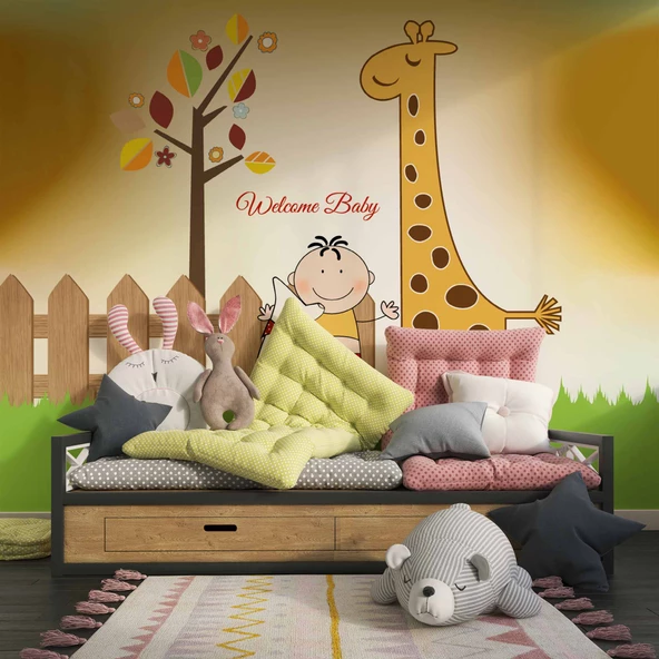 Zürafa Görselli Çocuk Odası Duvar Kağıdı Baskı